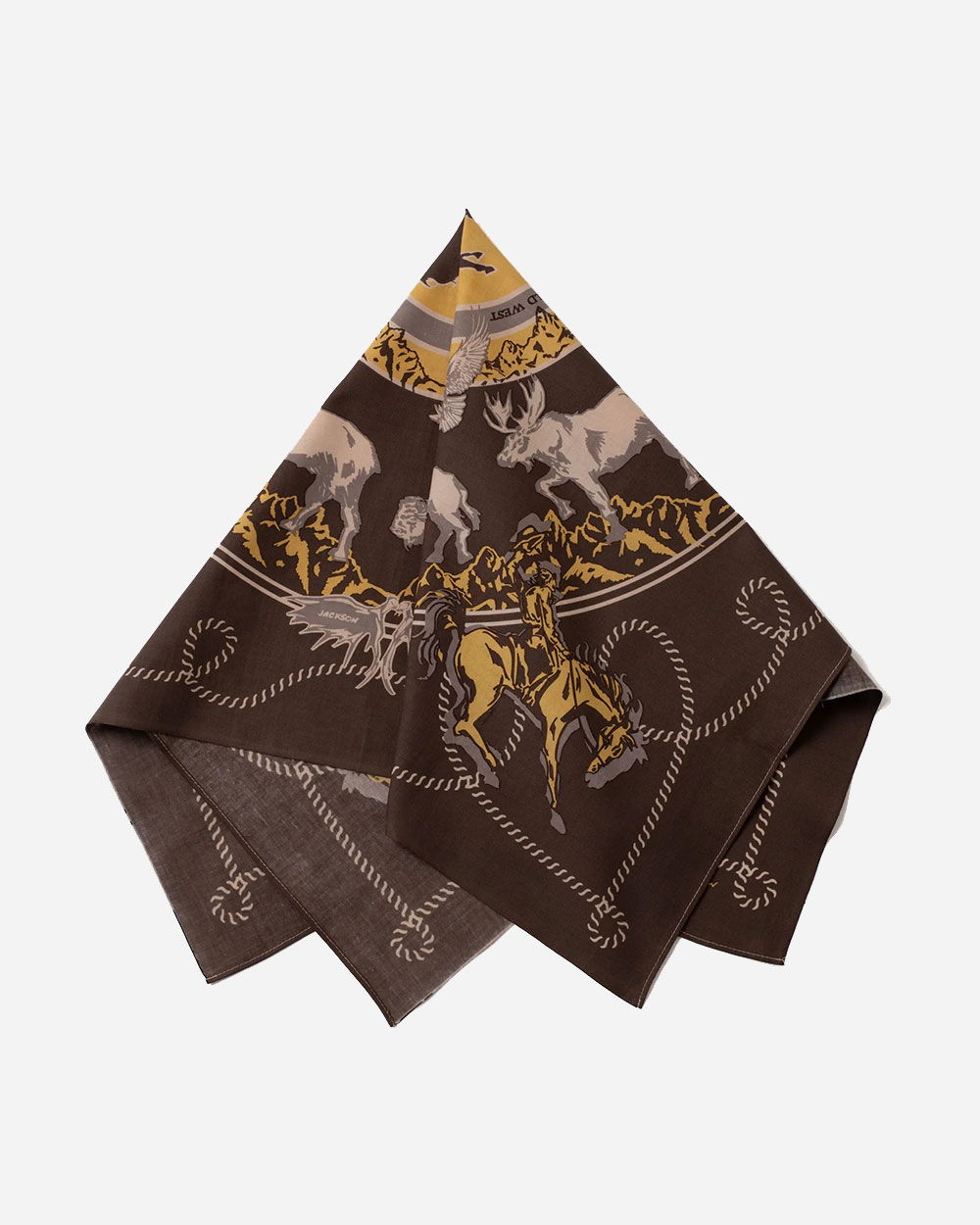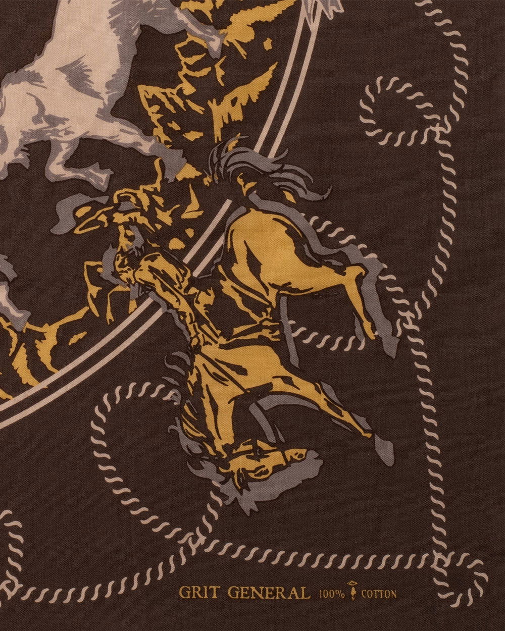 The One Ear Brand Jackson Bandanna is design in collaboration with Grit General, a cozy shop in Jackson, Wyoming. It features all the icons of Jackson; moose, grizzly bears, mountains, and of course cowboys. The colour palette is based on the city colours of Jackson, using vintage tones and hues to give the designs a more modern vintage feel. The design is based on the “Swagger” and Wrangler bandannas of the 1960s.