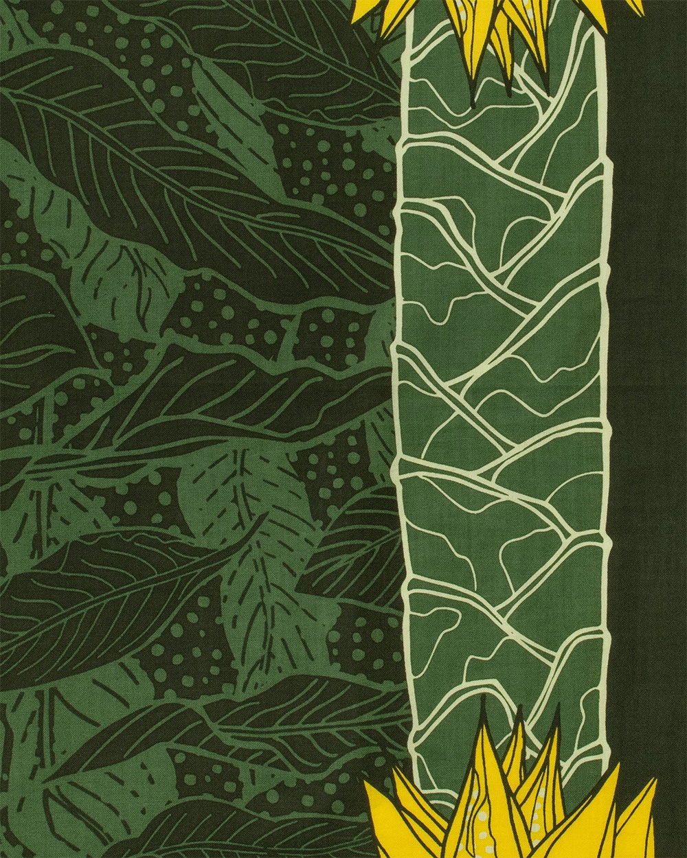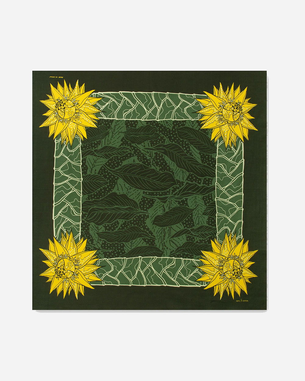 The One Ear Brand Musella Lasiocarpa Bandanna is inspired by brand owner Jonathan Lukacek’s favourite plant, the Golden Lotus Banana, a native plant to the Yunan area of China. In contrast to many other One Ear Brand bandannas, the design is simple, as all the details are from the actual plant itself. The banana leaf camo centre adds just the right amount of repeat pattern and the darker composition makes this a bandanna great to coordinate with all-year-round.