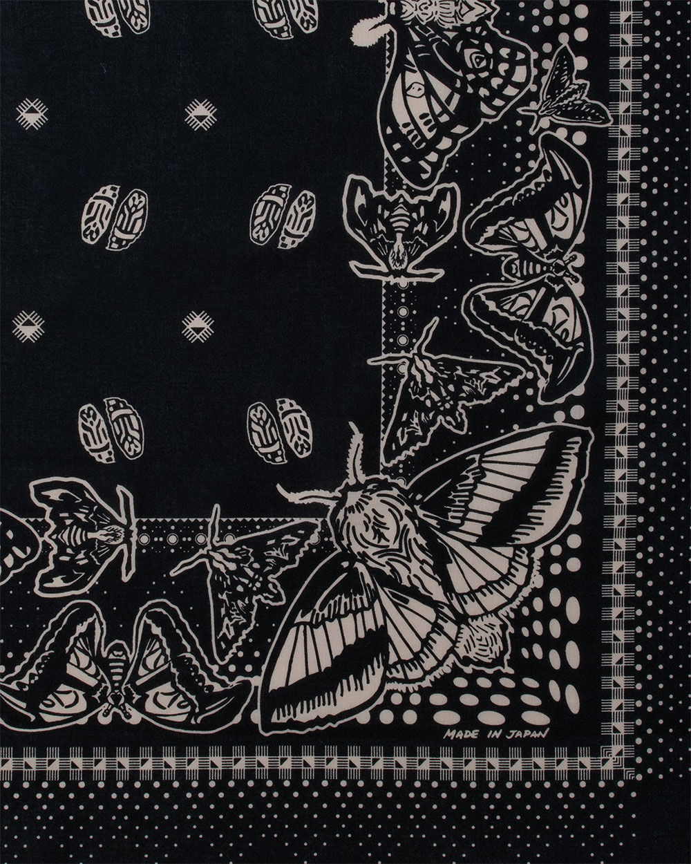 The One Ear Brand Nighthings Bandanna features an original art print and a new colour inspired by moths, cocoons and general cosiness. It’s the second in the brand’s dark nature series, looking at the backside of nature and the beauty in things that creep and crawl. The larger 90cm x 90cm size of these bandannas gives them more flexibility and potential uses for the contemporary market. We’re hoping to see One Ear Brand bandannas used in a wide range of locations in many different ways.