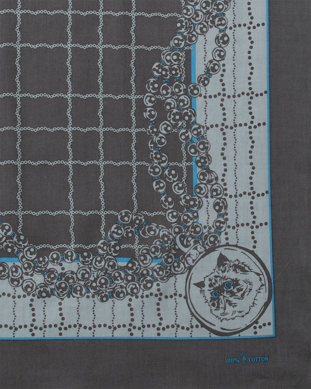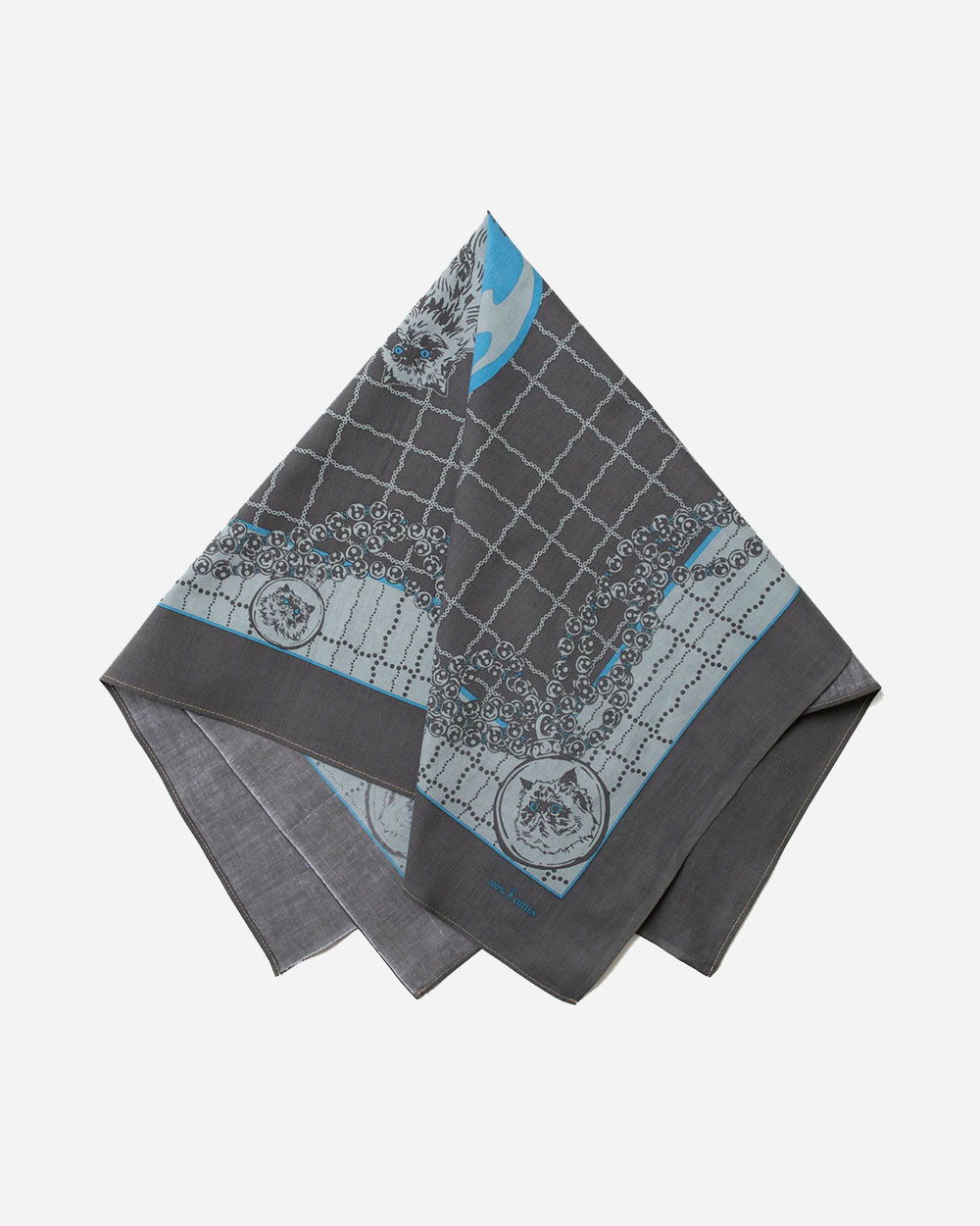 The inspiration for the One Ear Brand Ore-Ossan Bandanna comes in the form of Cartier Scarves and Himalayan cats. The colors compliment each other nicely and really pull together this cat themed piece. Folding and tying this bandanna in a variety of ways will show off certain parts of the design more than others. Please keep this in mind when wearing, so you can show off your favourite personal design bits.