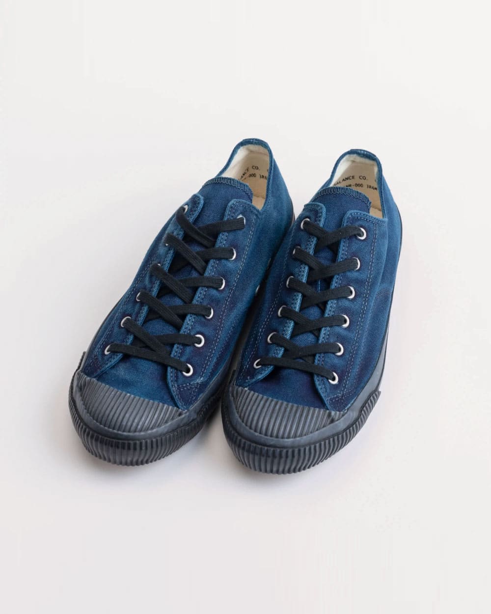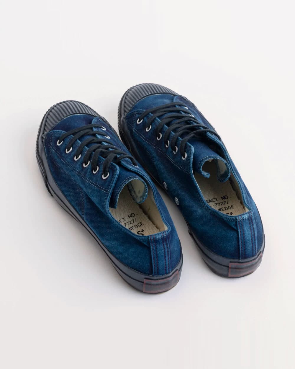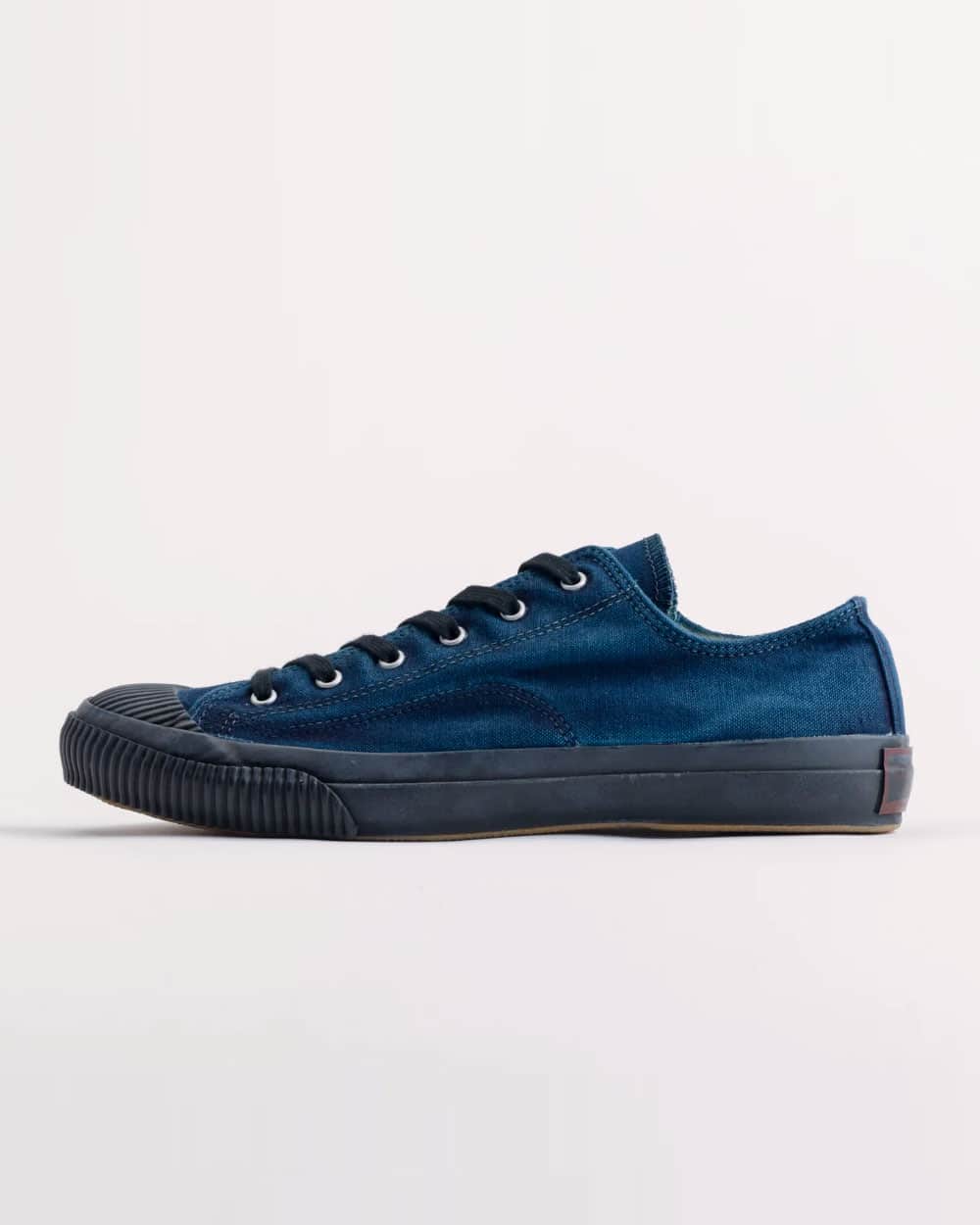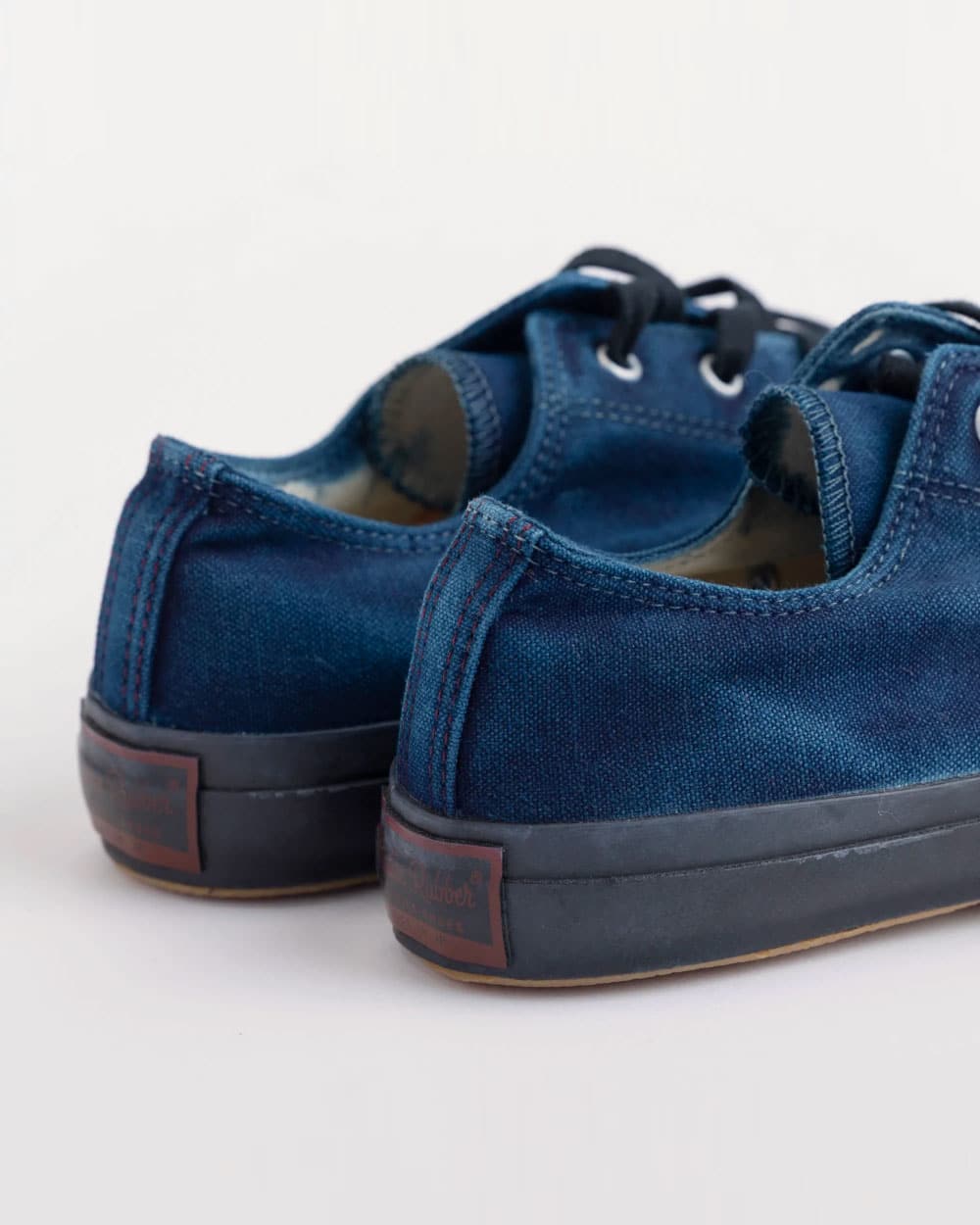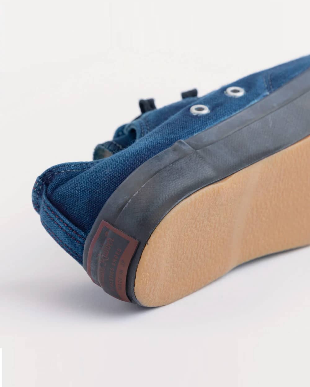 PRAS Shellcap Low Indigo Hand Dyed are hand dyed by skilled craftsmen with an indigo brush dye. The result is a deep colour that will fade over time with wear and exposure to water. The soles are non-slip and based on 1950s athletic shoes. They’re finished with vulcanised soles, a manufacturing process only possible in one location in Japan, giving unsurpassed durability and comfort. The nature of the dye means that there may be some colour transfer to your socks or trousers, but this will wash off.