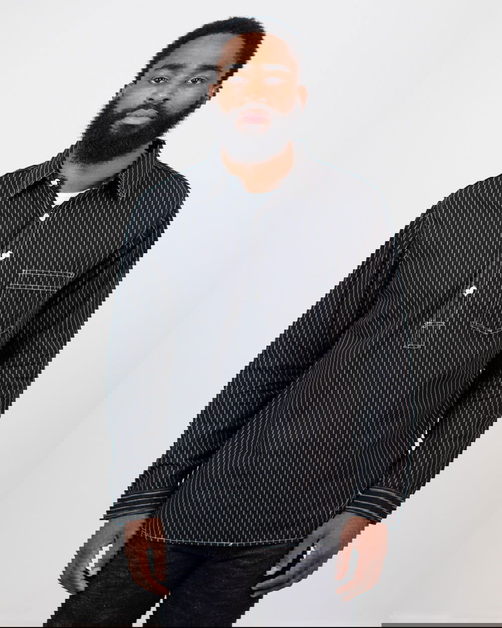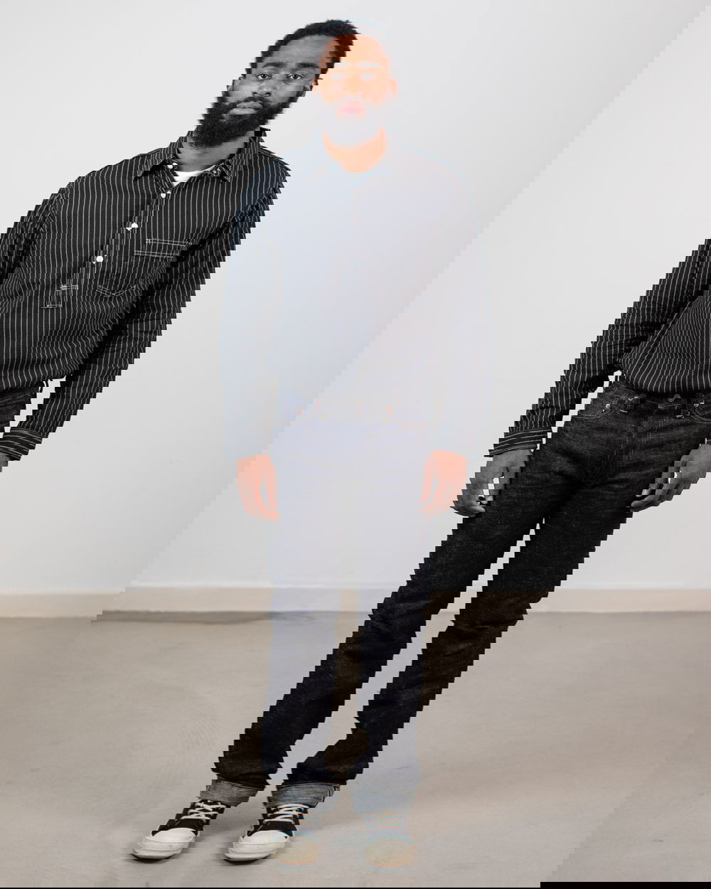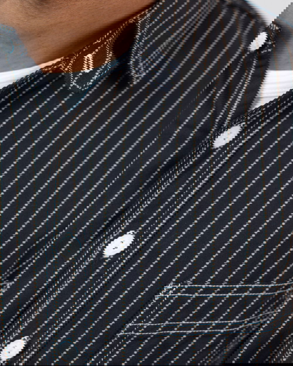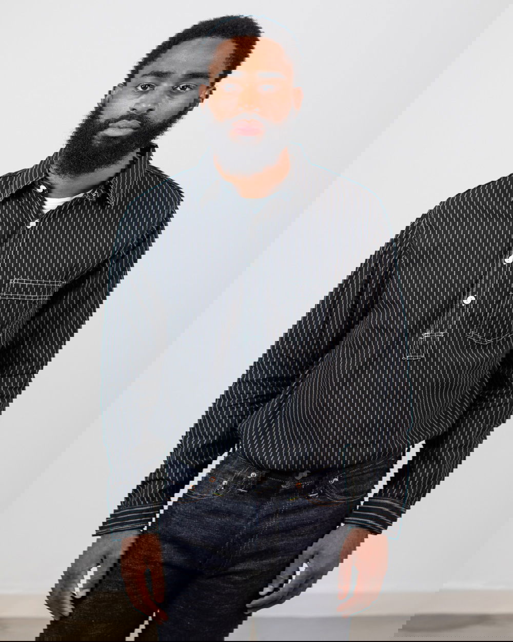 It is made from a selvedge discharge-dyed dot stripe Wabash fabric, milled in Japan, in both indigo and black sulphur dye in a versatile, year-round 5 oz weight. Both the indigo and sulphur fabrics used will fade with washing and wear so you can enjoy the unique ageing characteristics your garment takes on.